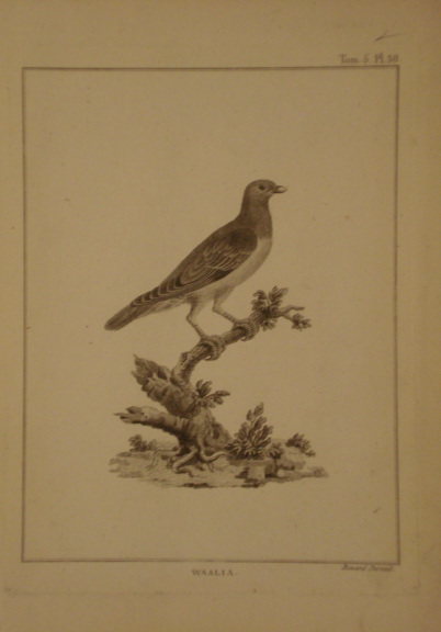 Seller ID: 1223 Paris: Chez Plassan, 1792. Copperplate engraving of a fine-looking desert bird, sheet (29cm x 22cm), [plate (22cm x 18cm) on fine rag paper. James Bruce, African explorer and Scottish wine merchant (1730-1794), visited Ethiopia searching for the source of the Blue Nile. Plates from this edition are based on Bruce's own drawings. Nissen ZB1: 618. A clean bright image with ample margins; simply mounted on white acid-free mat. Price: $125.00